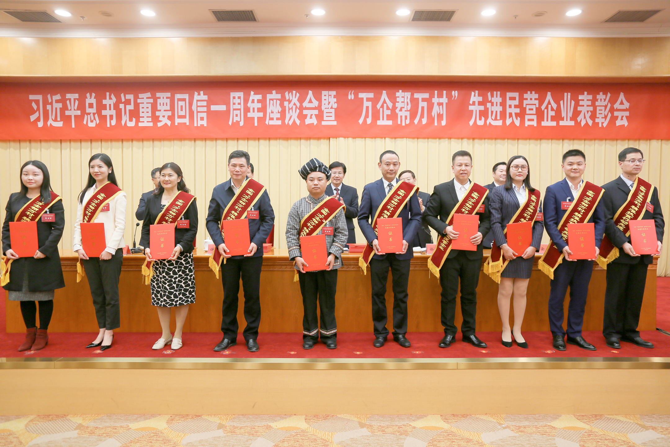 10月17日,全國(guó)工商聯(lián)、國(guó)務(wù)院扶貧辦在北京國(guó)誼賓館召開(kāi)習(xí)近平總書記重要回信一周年座談會(huì)暨“萬(wàn)企幫萬(wàn)村”先進(jìn)民營(yíng)企業(yè)表彰大會(huì),恒凱環(huán)保被全國(guó)工商聯(lián)、國(guó)務(wù)院扶貧辦授予“全國(guó)‘萬(wàn)企幫萬(wàn)村’精準(zhǔn)扶貧行動(dòng)先進(jìn)民營(yíng)企業(yè)”榮譽(yù)稱號(hào),集團(tuán)黨委書記、副總裁王巨濤出席表彰大會(huì)并接受表彰。此次共表彰了99家民營(yíng)企業(yè),湖南省有五家企業(yè)受到表彰,恒凱環(huán)保是長(zhǎng)沙唯一一家獲此殊榮的民營(yíng)企業(yè)。